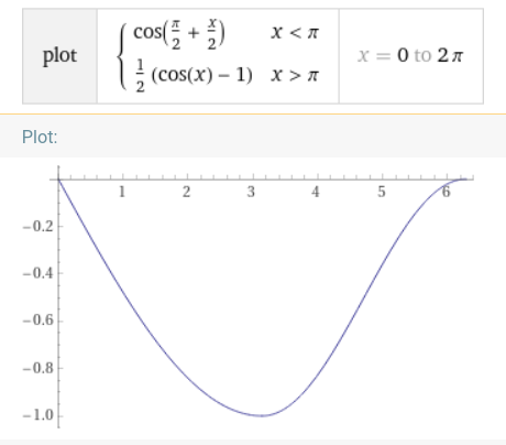 To do this convincingly, I need to drop down hard at the start, then ease at the nadir, and ease again on the way back to the zenith. For this, piecewise functions come to the rescue. I ended up using this: