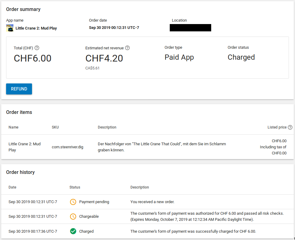 First order of business, let's verify whether the title actually exists on the store, using the link from the Google Play Developer Console, here: